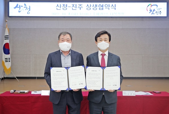 경남 산청군과 진주시는 '산청-진주 상생발전 업무협약식'을 가졌다고 5일 밝혔다.