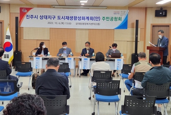 경남 진주시는 6일 상대동행정복지센터 2층 대회의실에서 각 분야 전문가와 시민 50여 명이 참석한 가운데 상대지구 도시재생 활성화계획 수립을 위한 공청회를 가졌다.
