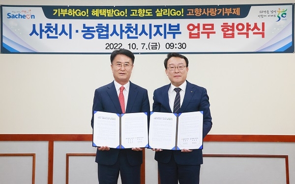 경남 사천시는 지난 7일 시청 6층 시장실에서 농협 사천시지부와 고향사랑기부제의 성공적 정착을 위한 업무협약식을 가졌다.