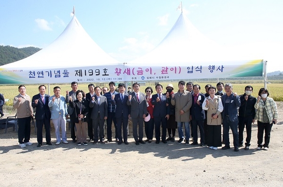 이날 행사는 홍태용 시장, 류명열 시의회 의장과 시의원, 주민 등 50여 명이 참석한 가운데 도입 배경 등 현장 브리핑, 황새 관람 순으로 진행됐다.