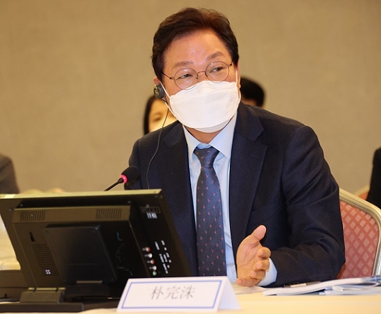 박 도지사는 주제발표를 통해 저탄소산업 육성과 탄소중립 산업생태계의 전환을 통해 2050년까지 탄소배출을 제로화하는 장기목표를 제시했다. 이를 위해 미래차 전략기술기반 확충, 근거리비행수단 메카 조성, 친환경·스마트 선박 육성, 제조산업의 디지털화, 친환경 미래에너지 생태계 조성의 5대 전략을 소개했다.