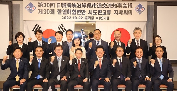 이날 3년 만에 대면으로 열린 '제30회 한일해협연안 시·도·현교류 지사회의'에 참석했다. 경남, 부산, 전남, 제주, 후쿠오카현, 사가현, 나가사키현, 야마구치현이 참여하고 있고, 이번 지사회의는 '녹색성장 전략추진'을 주제로 열렸다.