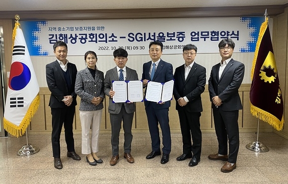김해상공회의소와 SGI서울보증은 지난 20일 김해상의에서 업무협약을 체결했다.