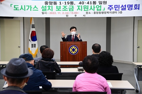 2일 중앙동 주민설명회에 참석한 조규일 시장은 “2023년부터 수요가부담 시설분담금 보조금 지원을 최대 300만 원까지 확대하여 취약지역 주민들의 숙원이었던 도시가스를 공급함으로써 시민들의 연료비 경감 및 주거환경 개선에 많은 도움이 될 것으로 기대한다”며 “앞으로도 계속하여 취약지역 중심으로 도시가스 보급 확대를 위해 더욱 노력하겠다”고 말했다.