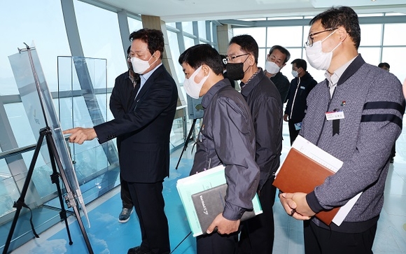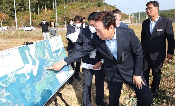 박완수 경남도지사가 3일 오전 로봇랜드, 구산해양관광단지 조성사업과 웅동1지구 사업현장을 방문해 추진상황을 챙겼다.