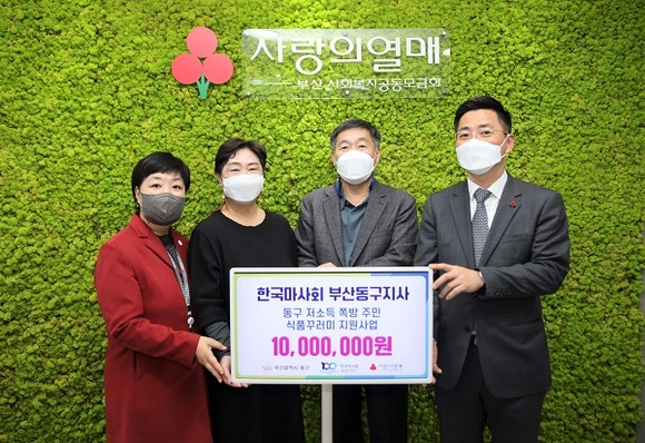 한국마사회 부산동구지사는 최근 관내 취약계층(쪽방주민) '식품꾸러미 지원사업' 후원금 1000만원을 부산사회복지공동모금회에 전달했다고 11일 밝혔다.