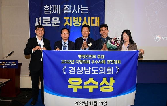 경남도의회는 11일 부산 벡스코에서 열린 '2022 전국 지방의회 우수사례 경진대회'에서 행정안전부장관 기관표창 '우수상'을 수상했다고 밝혔다.