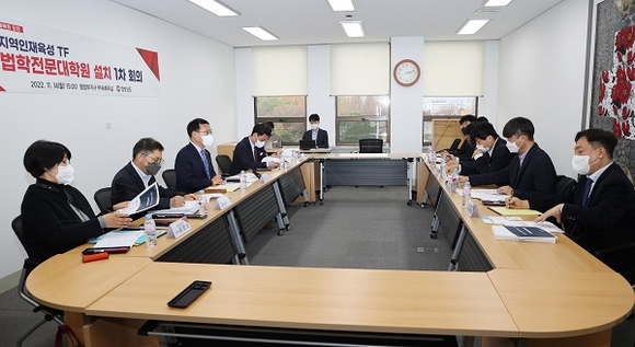 이번 회의는 지난 9일 박완수 도지사가 주재한 '도정 핵심과제 점검보고회'에 포함된 추진과제 중 하나로 도내에 우수인재를 유치하고 지역인재가 지역을 떠나지 않고도 살 수 있는 토대를 만들기 위한 '지역인재 육성을 위한 TF' 중 법학전문대학원 설치 분과의 첫 번째 회의다.