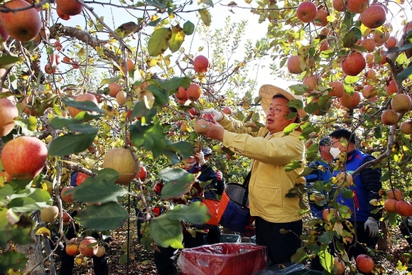 경남 밀양시는 본격적인 가을 수확철을 맞아 15일 산내면 소재 사과 수확 현장을 방문해 코로나19 장기화 및 고령화 등으로 인력 확보에 어려움을 겪고 있는 농가에 일손을 보태고자 농촌일손돕기에 나섰다.