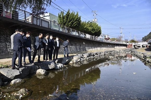 이번 현장 방문은 사천시 동지역 대표 하천을 전국을 대표하는 하천으로 탈바꿈시켜 '새로운 시작, 행복도시 사천'이라는 슬로건에 걸맞은 살기좋은 도시로 만들기 위해 마련됐다.