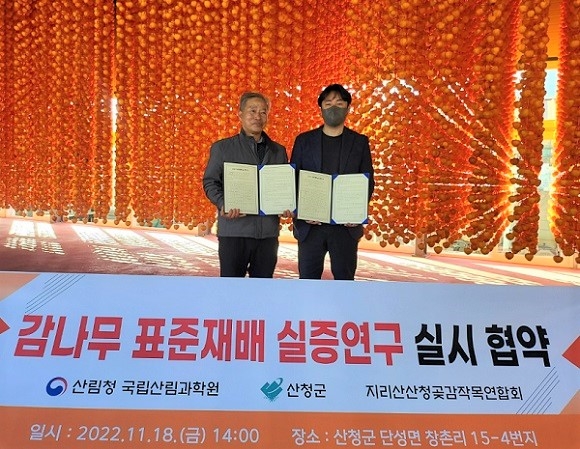 경남 산청 곶감 농가와 국립산림과학원이 곶감 산업 활성화를 위해 힘을 모은다.