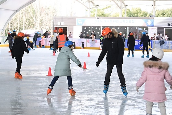 야외스케이트장 운영기간은 내년 2월 12일까지이며, 운영시간은 오전 10시부터 오후 7시(주말 오후 8시)까지다. 진주시 통합예약시스템에서 인터넷 예약으로 이용할 수 있으며, 당일 현장입장도 가능하다.