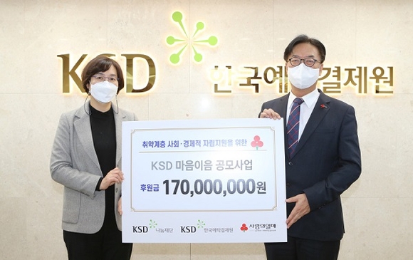 한국예탁결제원 KSD나눔재단은 지난 23일 '마음이음 공모 사업' 후원금 1억 7천만원을 '사회복지공동모금회'에 전달했다.