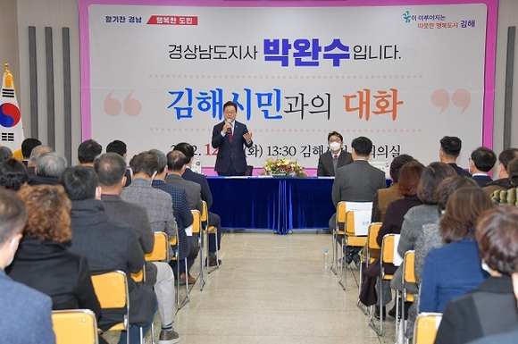 박완수 경남도지사가 27일 오후 김해를 방문해 200여 명의 시민들과 직접 소통을 이어갔다.