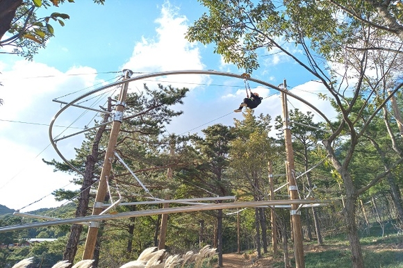 월아산 산림레포츠단지는 월아산 계곡의 높낮이 차이와 특색 있게 자리 잡은 숲속 공간을 이용해 조성한 레포츠 시설과 모험 체험장으로 지난해 5월 개장했다.