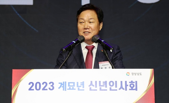 박완수 경남도지사는 계묘년 새해를 맞아 4일 오후 창원컨벤션센터 컨벤션홀에서 '2023년 신년인사회'를 갖고 도내 각계각층의 주요 인사들과 새해 인사를 나눴다.