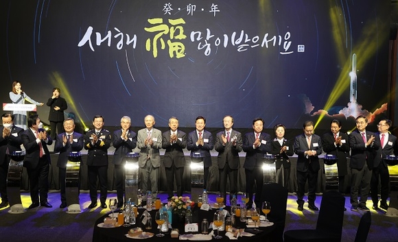 신년인사회 마지막 식순으로 진행된 세리머니에서는 경남이 대한민국의 우주시대를 선도해 나가기를 다함께 기원하는 의미로 누리호 조형물이 힘차게 솟아오르는 퍼포먼스를 선보였다.