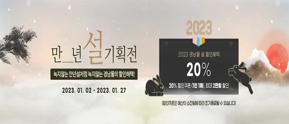 경남도는 민족 고유의 명절 설을 맞아 도민의 장바구니 부담 완화 및 소상공인 온라인 판로개척 지원을 위해 오는 31일까지 'e경남몰'에서 다양한 설맞이 기획전을 진행한다고 5일 밝혔다.