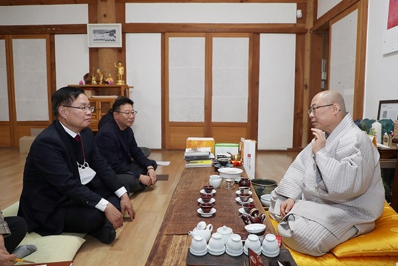 홍남표 창원시장은 5일 오후 성주사 법안 주지스님의 초청으로 성주사를 찾아 간담회를 가졌다.