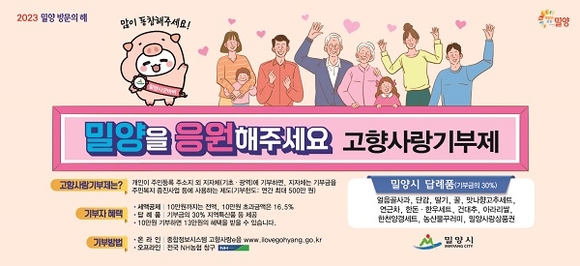 올해 1월 1일부터 고향사랑기부제가 시행된 가운데 경남 밀양시를 사랑하는 기부행렬이 꾸준히 이어지고 있다.