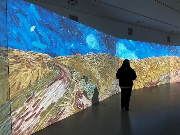 특히 눈여겨볼 점은 몰입형 실감미디어 전시 기법의 적용이다. 아름다운 명화작품 이미지를 디지털 기술로 재현한 25분 분량의 대형스크린 영상물은 '돈 맥클린'의 곡 '빈센트' 등 주제가 담긴 음악들과 어우러져 마치 관람객이 '빈센트 반 고흐'의 독특한 작품세계 속을 산책하는 것과 같은 새로운 감흥과 깊은 여운을 남긴다.