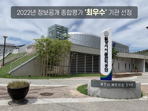 밀양시시설관리공단은 행정안전부가 주관하는 2022년 정보공개 종합평가에서 최우수기관으로 선정됐다고 13일 밝혔다.