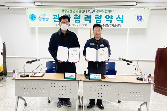 이에 청송군농업기술센터는 경북도립대 AI농업기기전공학과 현장실습기회 제공 및 지역 우수인력 취업연계 협조, 교재공동 개발 및 특강지원 등 인적·지식·기술자원에 대해 상호 협력관계를 약속했다.