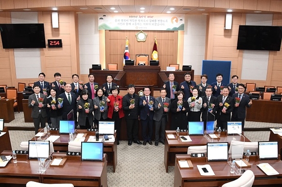 이어 “집행부에서도 동북아 물류플랫폼 유치와 김해공공의료원 설립, 산업구조 재편, 그린 생태계 조성 등 김해 미래 성장을 위한 정책과 핵심 현안사업이 제대로 결실을 얻어 그 혜택을 시민 모두가 함께 나눌 수 있도록 최선을 다해주길 바란다”고 당부했다.