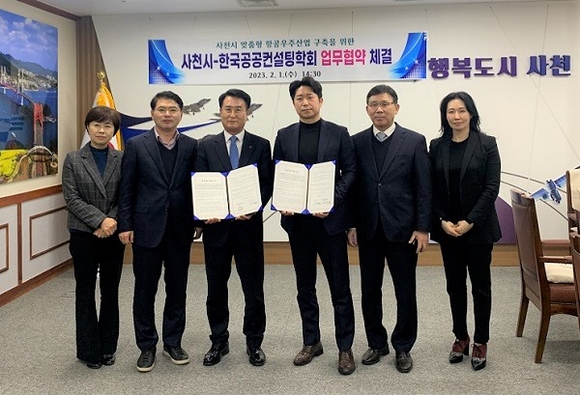 경남 사천시와 한국공공컨설팅학회는 1일 시청 시장실에서 맞춤형 항공우주산업 구축을 위한 업무협약을 체결했다.