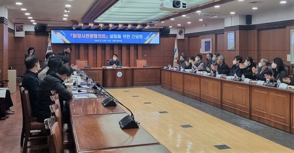 경남 밀양시는 밀양방문의 해를 맞아 관광수용태세 개선 등 민간주도 상설협의체인 '밀양시관광협의회'를 설립하기 위해 간담회를 가졌다고 2일 밝혔다.