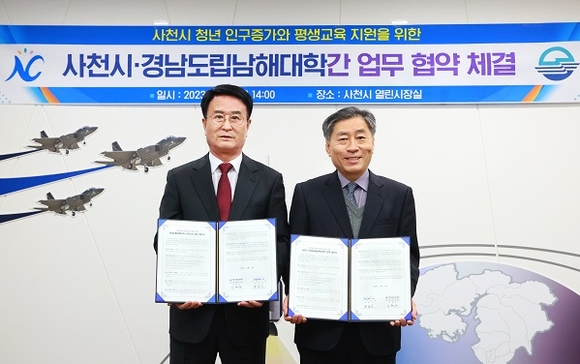 박동식 시장은 “사천시와 경남도립남해대학이 양 기관의 장점을 살려 상호협력적 관계를 구축헤 청년들에게 양질의 교육과 취업기회를 제공하고 이를 통해 인구증가에 기여하는 좋은 계기가 될 것”이라고 말했다.