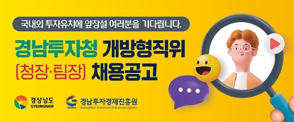한편 경남도 출연기관인 경남투자경제진흥원 내에 설치되는 경남투자청은 우수한 투자유치 전문 인력을 구성, 투자유치 업무의 전문성과 연속성 강화를 통해 도의 기업유치 활성화에 중추적인 역할을 할 예정이다.