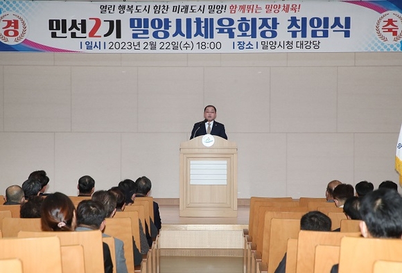 밀양시체육회는 지난 22일 시청 대강당에서 민선 2기 민경갑 회장의 취임식을 가졌다.