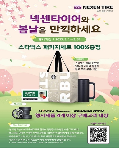 넥센타이어가 봄을 맞아 구매 고객 대상으로 이벤트를 실시한다고 2일 밝혔다.