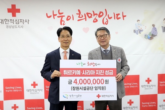 창원시설공단이 튀르키예와 시리아의 지진피해 복구를 위한 성금을 대한적십자사에 기탁했다.