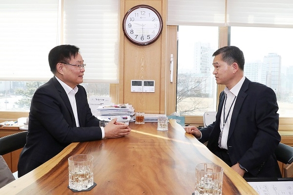홍남표 창원시장은 8일 오전 시청 집무실에서 신임 인사차 방문한 김종술 경남동부보훈지청장과 환담했다.