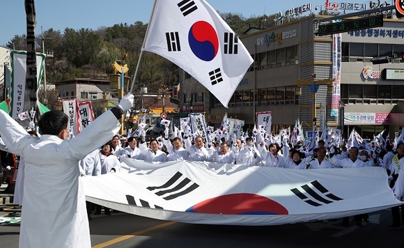 경남 밀양시는 13일 밀양관아 앞에서 밀양향토청년회 주관으로 일제의 식민 통치에 항거하고 독립을 외친 선열들의 정신을 기리는 104주년 3·13 밀양만세운동 재현행사를 가졌다.