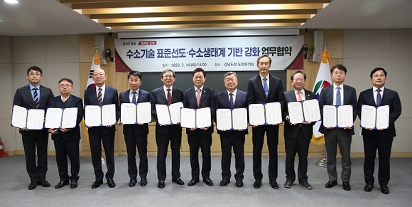 밀양시는 14일 경남도청 도정회의실에서 박완수 도지사와 박일호 시장을 비롯한 산·학·연·관 관계기관장이 참석한 가운데 '수소환경 소재·부품 기업지원센터' 설립을 통해 수소 기술 표준을 선도하고 수소산업 생태계 기반을 강화하기 위한 업무협약을 체결했다.