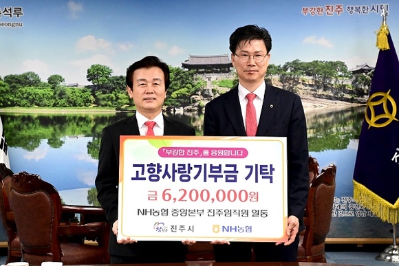 시청을 방문해 기부한 임·직원 외에도 32명의 농협 직원들이 고향사랑 기부에 뜻을 더하면서 진주시는 총 620만 원의 기부금을 기탁 받았다.