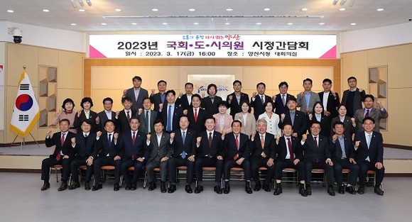 경남 양산시는 17일 시청 대회의실에서 지역 현안과 국·도비 확보 사업에 선제적으로 대응하고자 국회의원, 도의원, 시의원을 초청해 시정간담회를 가졌다.