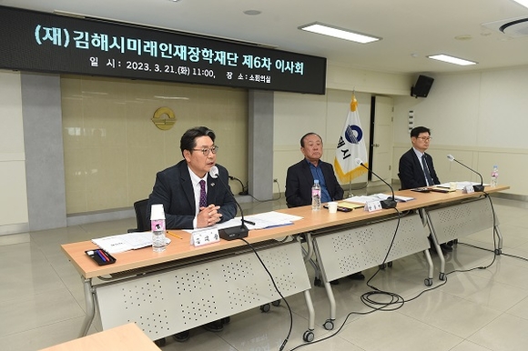 재단은 21일 김해시청에서 제6차 이사회를 열어 이러한 내용을 포함해 ▲2022년 세입·세출 결산(안) ▲특별 장학금 ▲제1회 추가경정예산 ▲정관 일부 개정 ▲시행세칙 일부 개정 등 5건의 안건을 심의 의결했다.