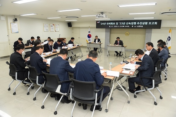 경남 김해시는 지난 23일 시청 소회의실에서 홍태용 시장 주재로 2024년 국비 확보 및 2023년 신속집행 추진상황 점검을 위한 보고회를 가졌다.