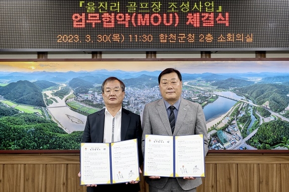 경남 합천군은 지난 30일 군청 소회의실에서 합천개발(주)와 '율진리 골프장 조성사업'의 성공적인 추진을 위한 업무협약(MOU)을 체결했다.