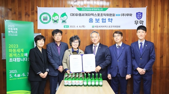 하동세계차엑스포조직위원회는 6일 ㈜무학과 엑스포 성공 개최를 위한 협력과 지역제품 애용 및 상호발전을 위한 업무협약을 체결했다.