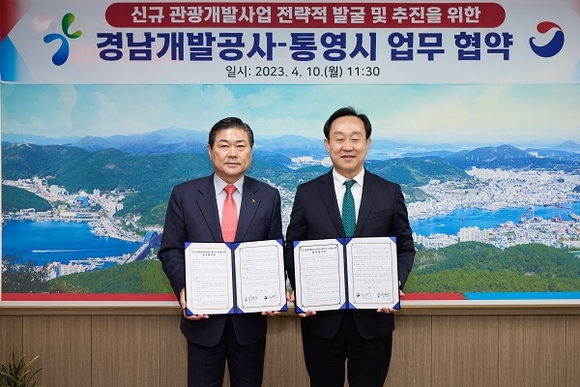 경남개발공사는 10일 통영시청에서 통영시와 '신규 관광개발사업 전략적 발굴 및 추진'을 위한 업무협약(MOU)을 체결했다.