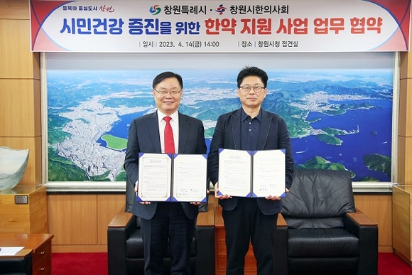 경남 창원시는 14일 시청 접견실에서 창원시한의사회와 시민 건강증진을 위한 한약 지원사업 협약식을 가졌다.