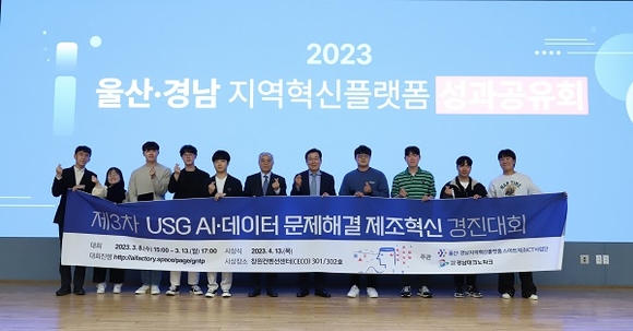 울산·경남지역혁신플랫폼(스마트제조ICT사업단)과 경남테크노파크가 공동 주관하는 '3차년도 USG AI·데이터 문제해결 제조혁신 경진대회' 시상식이 지난 13일 창원컨벤션센터에서 열렸다.