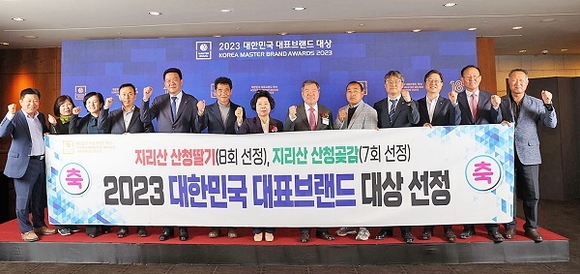 18일 산청군에 따르면 이날 서울 신라호텔에서 열린 '2023 대한민국 대표브랜드 대상' 시상식에서 산청딸기와 산청곶감이 지방자치단체 지역특산물 대상을 각각 수상했다.