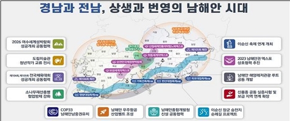 또한 남해안종합개발청 설립에 박차를 가하고, 이순신 장군 승전지 순례길과 해양레저관광 루트를 공동 개발하자는 협력과제는 남해안권 관광 활성화에 사활을 건 양 지자체의 의지를 느낄 수 있는 과제다.