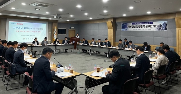 경남도는 20일 오후 서부청사에서 경남도 및 12개 시군 30여 명이 서부권 3대 핵심축 성장동력 16개 선도사업의 추진·확산 방안을 모색하기 위해 '서부경남 발전전략 실무협의회'를 가졌다.